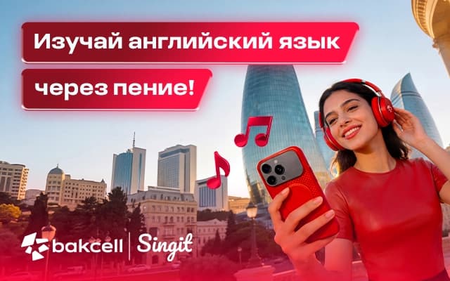 Скачай приложение Singit, зарегистрируйся с номером Bakcell и оплачивай ежемесячную подписку напрямую с мобильного баланса. Кроме того, воспользуйся услугой бесплатно в течение первых 30 дней. В приложении Singit ты можешь улучшить свои знания английского языка с помощью искусственного интеллекта или выучить его с нуля. Ты сможешь развивать знание языка, исполняя песни, изучая новые слова, слушая речь и разговаривая на английском.